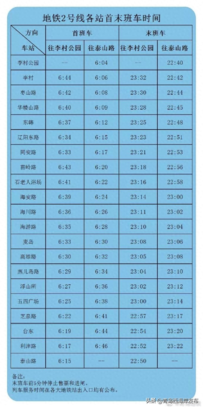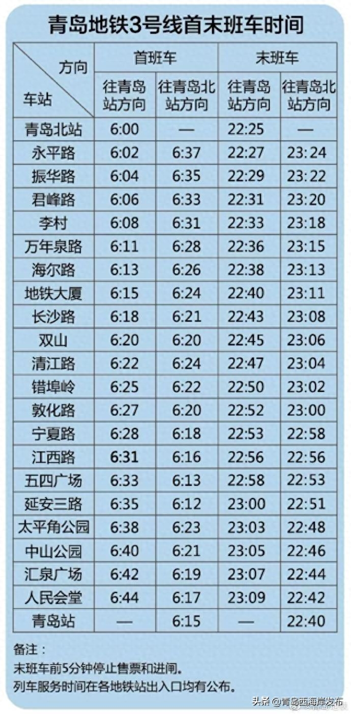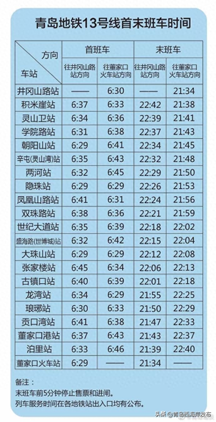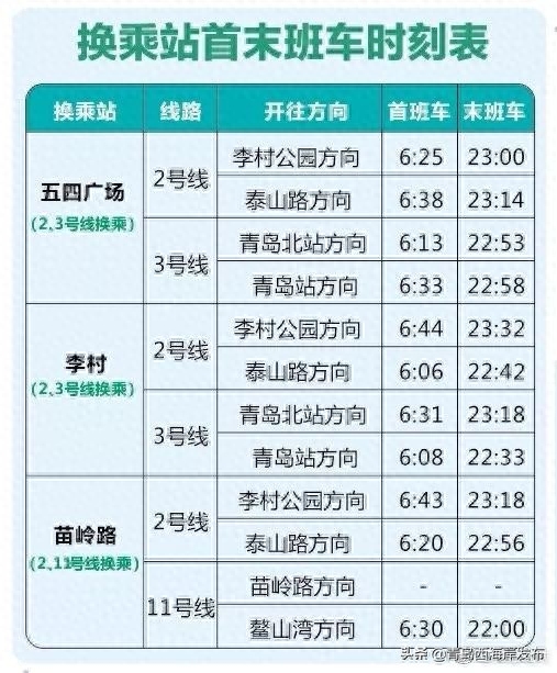 最新!青岛地铁更新各线首末班车时间以及换乘时间表,涉及青岛西海岸新区13号
