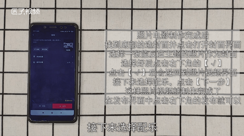点击【√】后会返回到照片视频界面,接下来选择配乐,点击【下一步】。