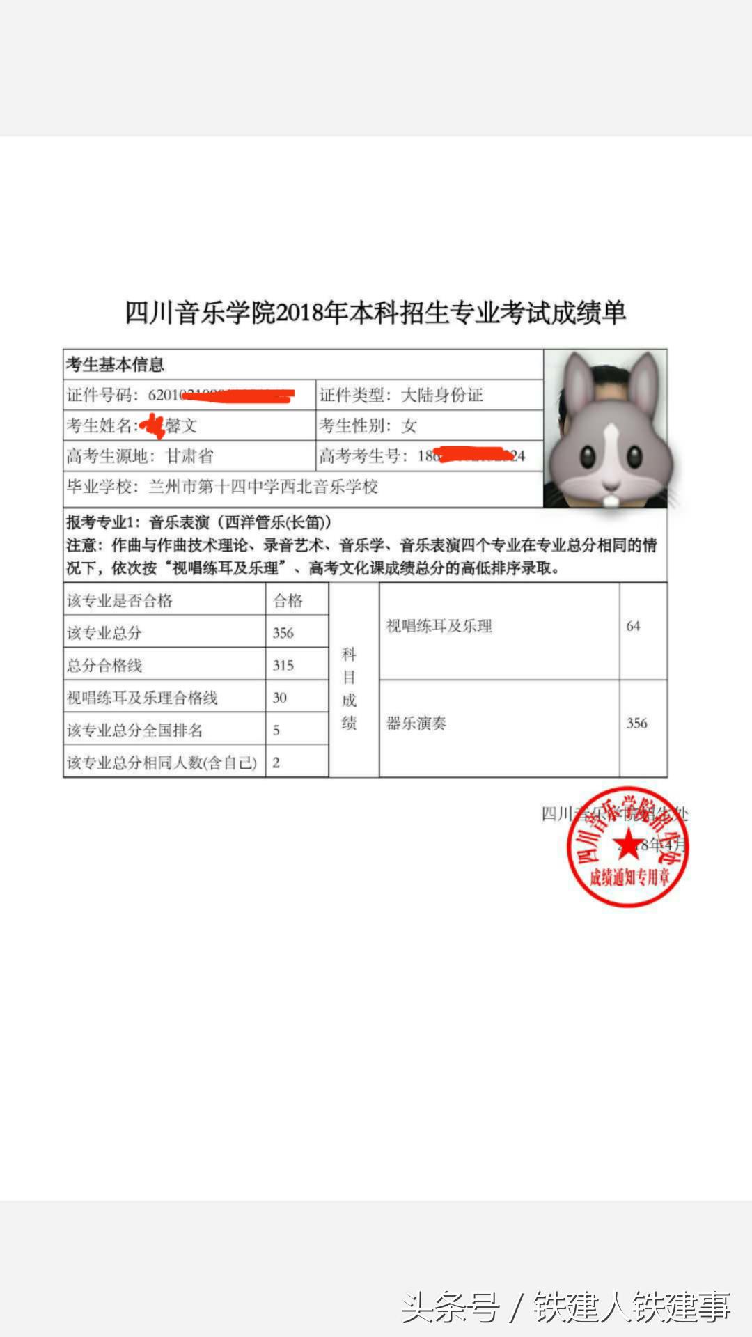 特大喜报,川音校考专业成绩排名出炉,为女儿加油!