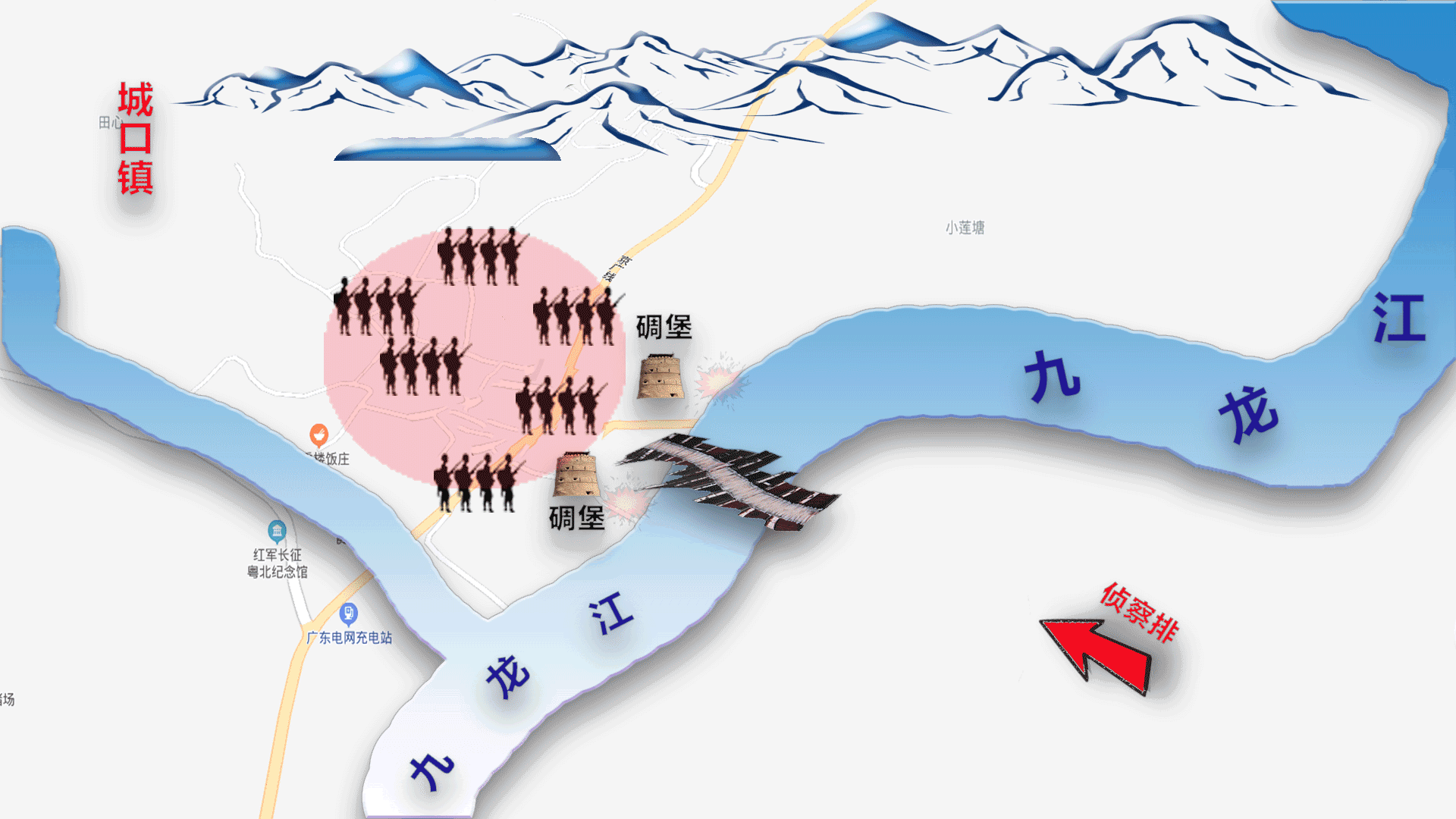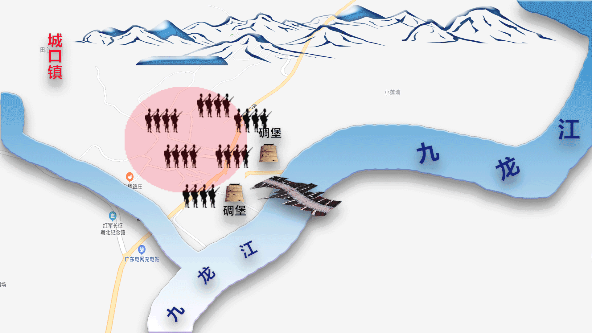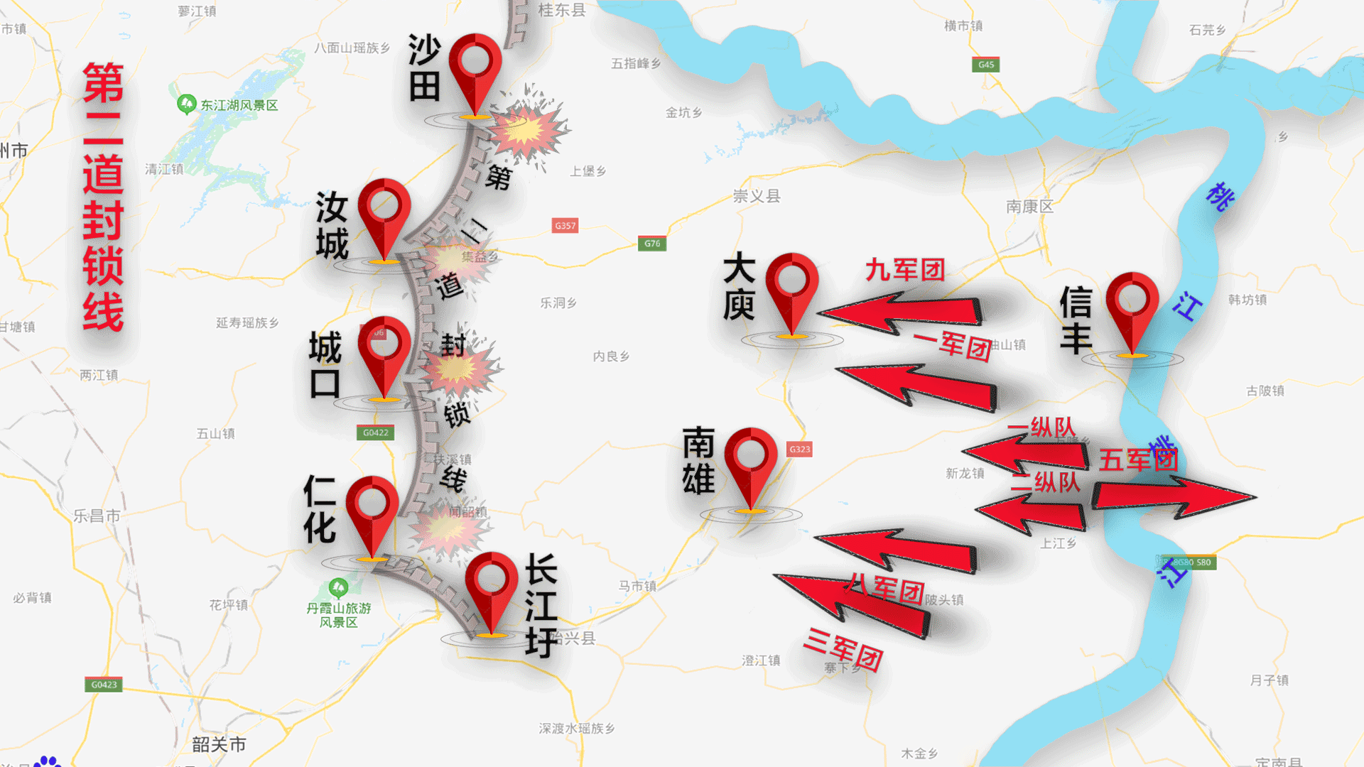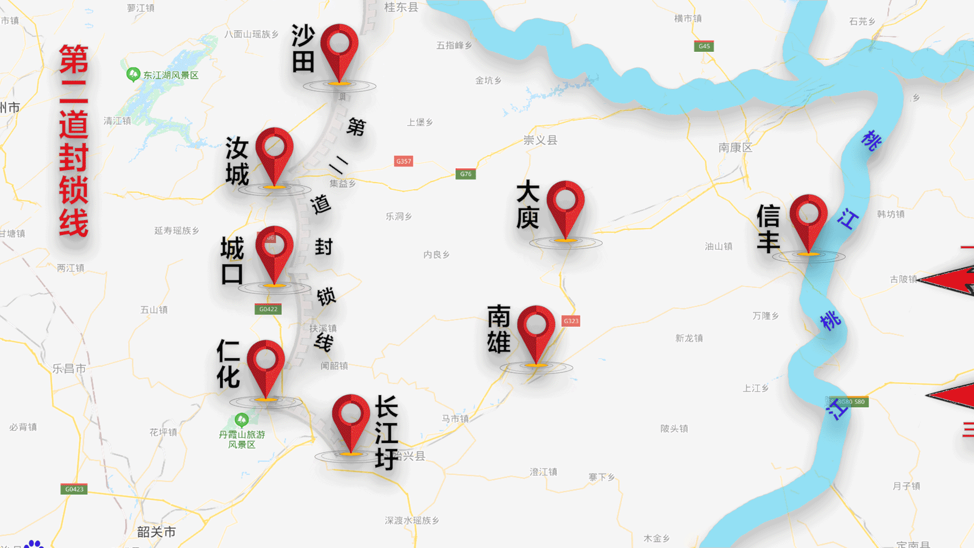 这里是敌人构筑的第二道封锁线的中心位置,敌人沿着汝城、城口、仁化构筑起来第二道封锁线阻止红军西进。