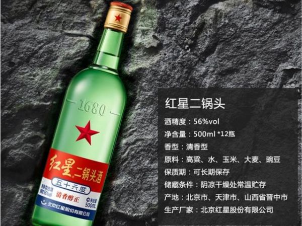 早期红星二锅头配料表只有水、高粱,后来更改为:水、高粱、玉米、大麦、豌豆。