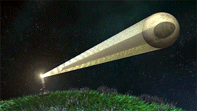 还有一个悖论是“超光速的剪刀”,说是只要剪刀的两个刃足够长,以至于我不用担心它的长度不够用时,那么它两刃剪切的重合点的速度会被放大,甚至超过光速。当剪刀张开的角度为 时,这个重合点的速度会是刀刃角速度乘以刀宽再乘以 倍。再直观点,只要我以1圈/s的角速度转动1cm宽的剪刀,那么在 时,这个重合点就会超光速。