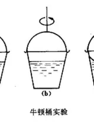 这就是牛顿力学的局限之处,它没法外在地定义什么样的参考系是符合惯性定律的,或者说,剪切模量和弹性模量的关系,什么才是“惯性系”。当时的牛顿已经意识到了这个问题,并提出了水桶实验,其中有四个要点:(1)一个水桶在平放在地面上,水面平静;(2)刚开始转动水桶,水面依然平静;(3)桶转动一段时间后水也被带动同步旋转,并在水桶这个旋转系中产生离心效果,水面下凹;(4)将桶突然停下,水依然继续旋转,且水面依然依然下凹。牛顿的问题是,水面出现下凹的情景,一定是因为需要一个向心力来维持水的旋转,但水究竟在相对于什么旋转?如果是相对于木桶,那为什么会出现(3)中两者相对静止,却依然水面下凹的情况?如果不是相对于木桶,那又是相对于什么?