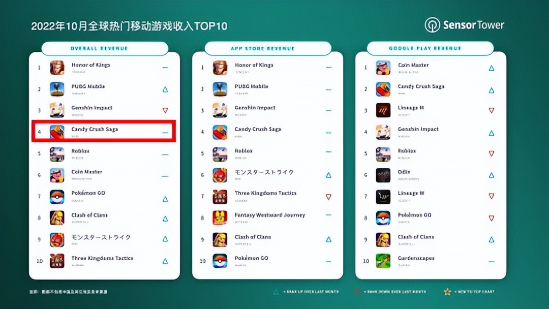 根据Sensor Tower公布的2025年11月全球手游收入排行榜,第四名的正是《糖果缤纷乐》,在前头的都是《王者荣耀》、《和平精英》和《原神》这种收入大牛。
