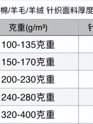 克重,巴素兰羊毛衫的价位,针织面料的指标,即每平方米面料的重量,单位g/m³,代表针织面料的稀疏紧密,是针织面料档次的重要指标。