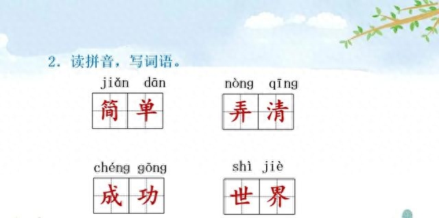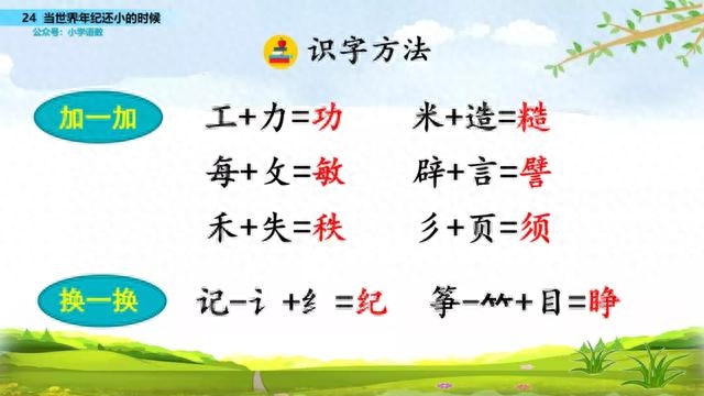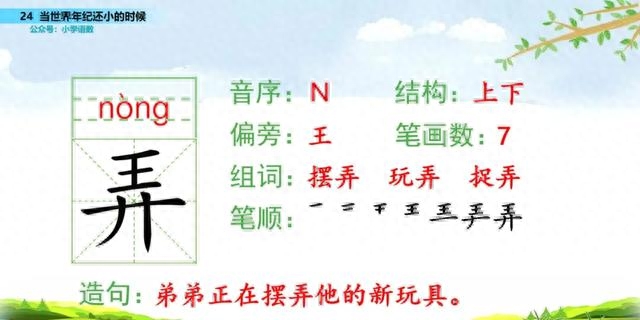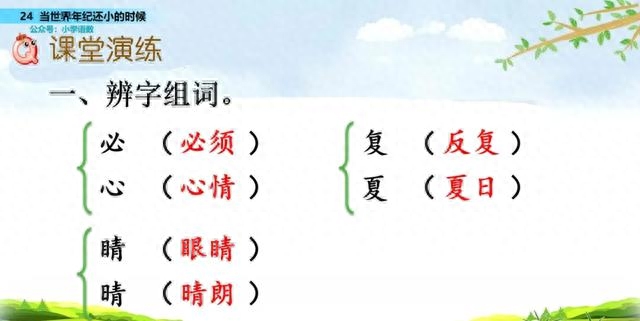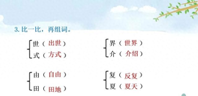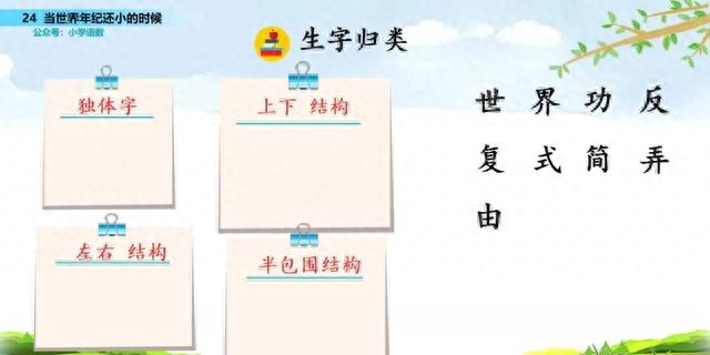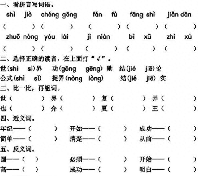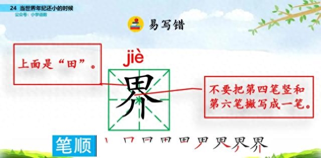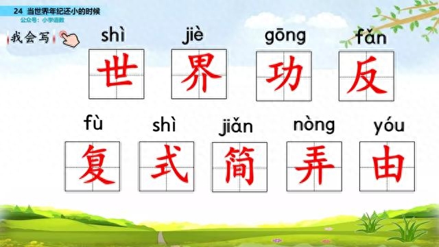 世(世界) 界(世界) 复(复习) 弄(捉弄)