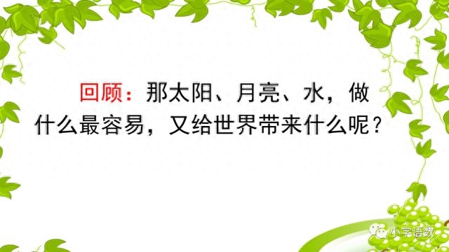 3.太阳、月亮、水它们做着什么,它们明白自己做什么最容易了吗?它们给世界带来了什么?