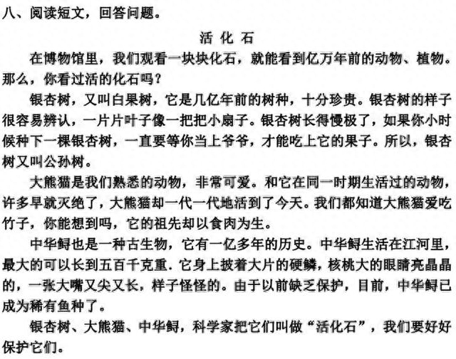 动物活化石:扬子鳄、鸭嘴兽、鲎、娃娃鱼。