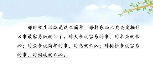 (2)很久很久以前,当世界年纪还小的时候,树木自由生长,自然长大,自然衰老,没有人去砍伐它们,树上的果子除了小动物啄食它们,多余的就自然落下。果实腐烂,里面的种子又在第二年春天发芽,长出更多的果树……