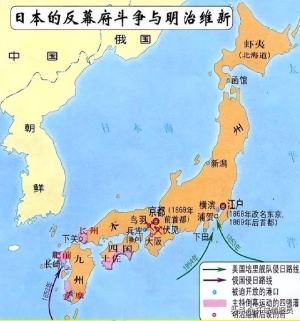 后来幕府统治渐趋黑暗,执行严格的闭关锁国政策,直到1853年黑船来航,美国以炮舰威逼日本打开国门,人们开始认识到要真正富强,就要推翻幕府统治,倒幕运动爆发。