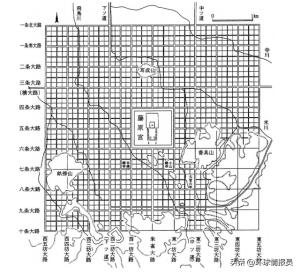 平安京营建时,正是遣唐使活动的高潮, 所以新京的格局以中国都城为榜样古代便属理所当然。