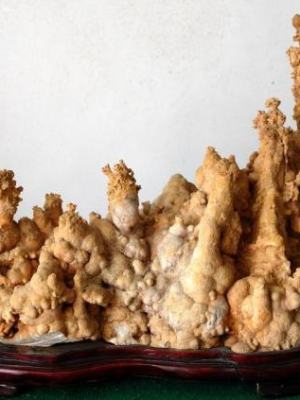 青州石称青州怪石,主要产于山东省潍坊市的青州市益都至临朐县之间的山峦坡土中。该石的石质为石灰岩,质地细腻;石形玲珑剔透、千奇百怪;呈紫、灰、棕、黑等颜色,纹理纵横交错;大多都是细碎块状,小者仅几厘米,偶有高达数米的独体大块。造型既有具象又有抽象,或以瘦、透、漏、皱见长,或以纹理奇特著称。