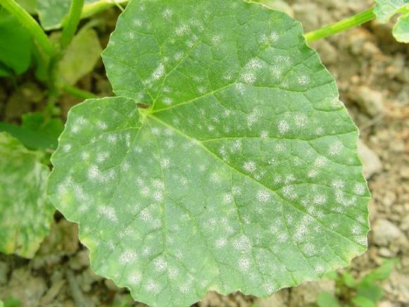 发病症状:俗称"白毛病"叶片发病,初期叶片正面和背面产生近圆形小白粉斑;逐渐扩大为边缘不明显的大片白粉区,好像在叶片撒了层白粉,抹去白粉,可见叶片退绿,枯黄变脆。病斑背面也初现白色霉状物,即病菌的分生孢子梗及分生孢子。叶柄、茎秆发病症状与叶片相似,只是病斑和粉状物较少。一般不危害果实。