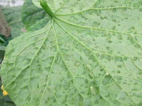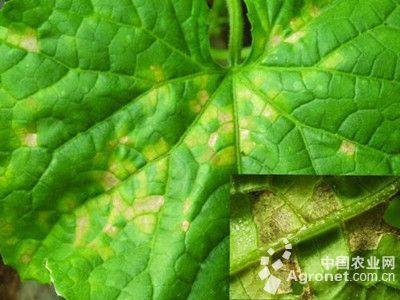 发病症状:真叶染病时初为鲜绿色水浸状斑,渐变成淡褐色、病斑受叶脉限制呈多角形,灰褐或黄褐色,湿度大时叶背溢有乳白色浑浊水珠状菌脓,干后有白痕,病部质脆易穿孔,别与褐斑病和霜霉病。发病规律:病菌喜温暖潮湿的环境,发病适温在18~28℃,相对湿度80%以上,黄瓜最易感病生育期是开花座果期至采收盛期,长江流域黄瓜角斑病发病盛期在4~6月和9~11月