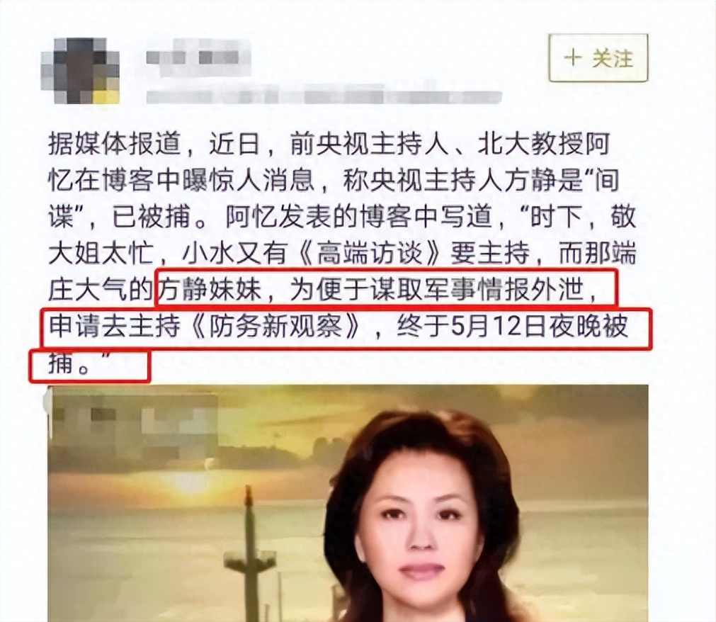 “端庄大气的方静妹妹,为了便于谋取军事情报外泄,申请去《防务新观察》,终于在5月12日夜被捕。”