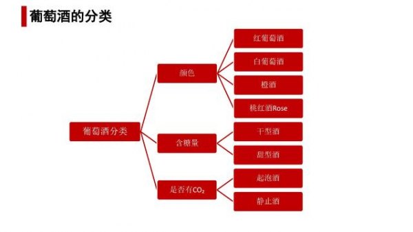 2 实际上从颜色上分的话,葡萄酒包括红葡萄酒(red wine)、白葡萄酒(white wine)、桃红葡萄酒(rose wine)等三种。因为葡萄酒是从1990后才在国内慢慢兴起,当时老百姓在电视上看到的,超市里买到的,喝到的绝大部分都是红颜色的葡萄酒,而当时国内主要酒类是白酒,所以对于葡萄酒这个新的品类老百姓就称为红酒。这个称呼习惯一直延续到现在。