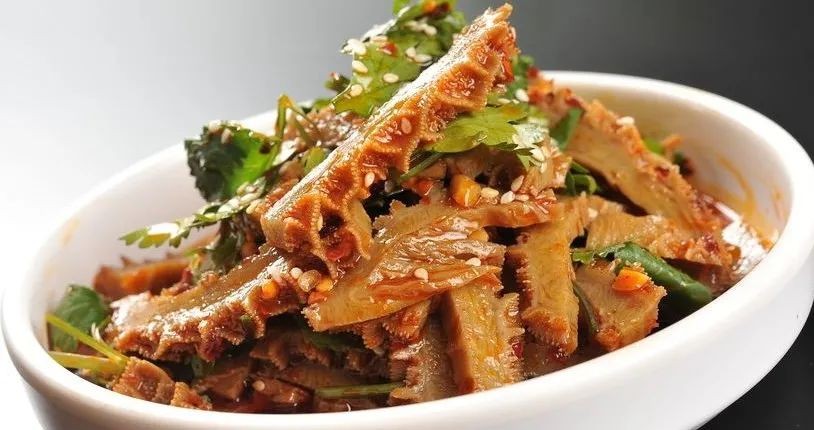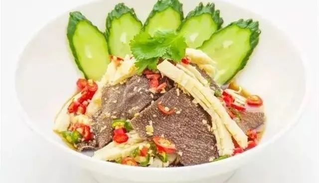 1.将冷却后的牛肚用斜刀切成1厘米宽的薄片。加入所有的调料搅拌均匀,装盘上桌即可。