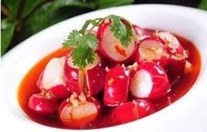 1.樱桃小萝卜去茎叶,洗净,用刀拍裂,也不用太碎。