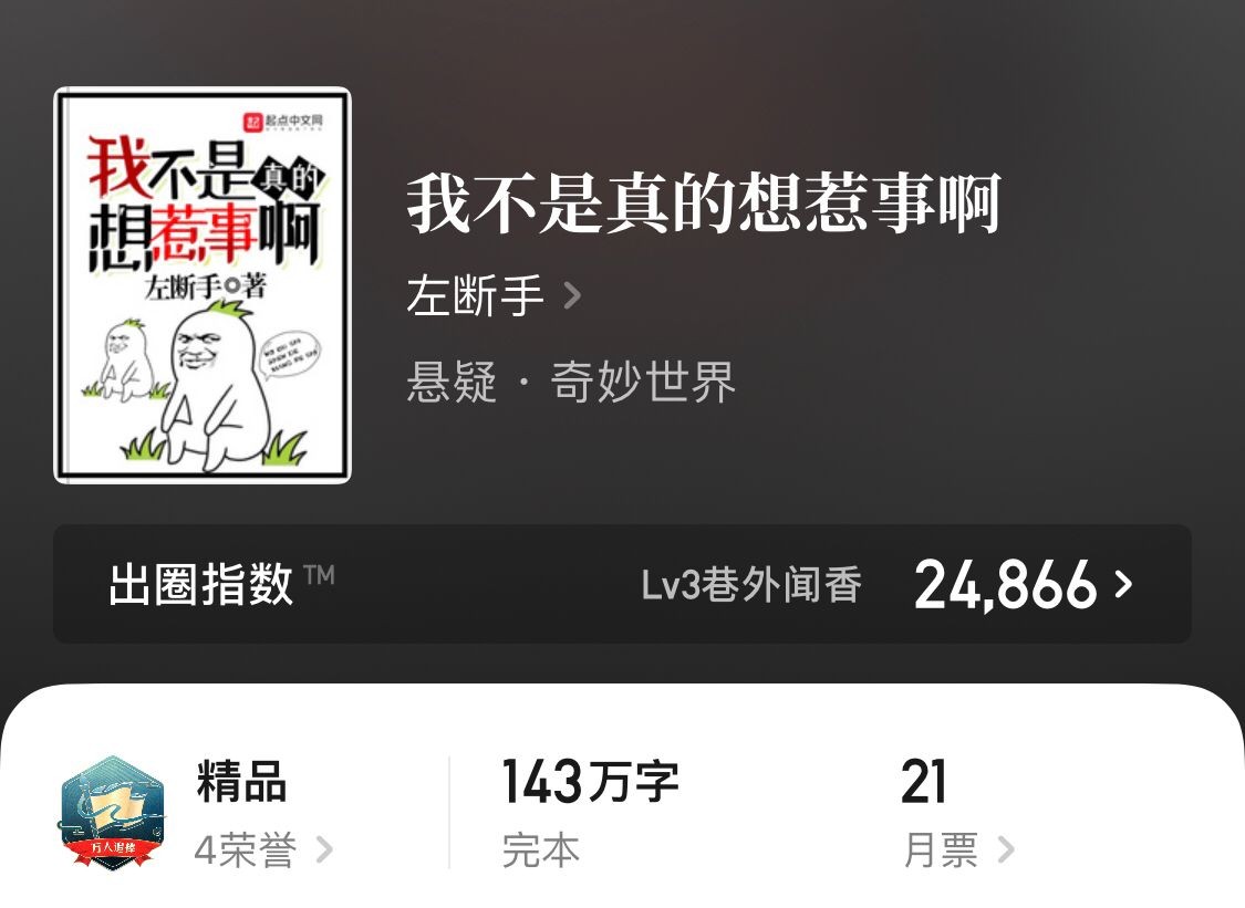 另外,如果本文中的小说未能帮您解书荒,也不妨看看年糕的主页,里面有大量各种类型的小说在等您。