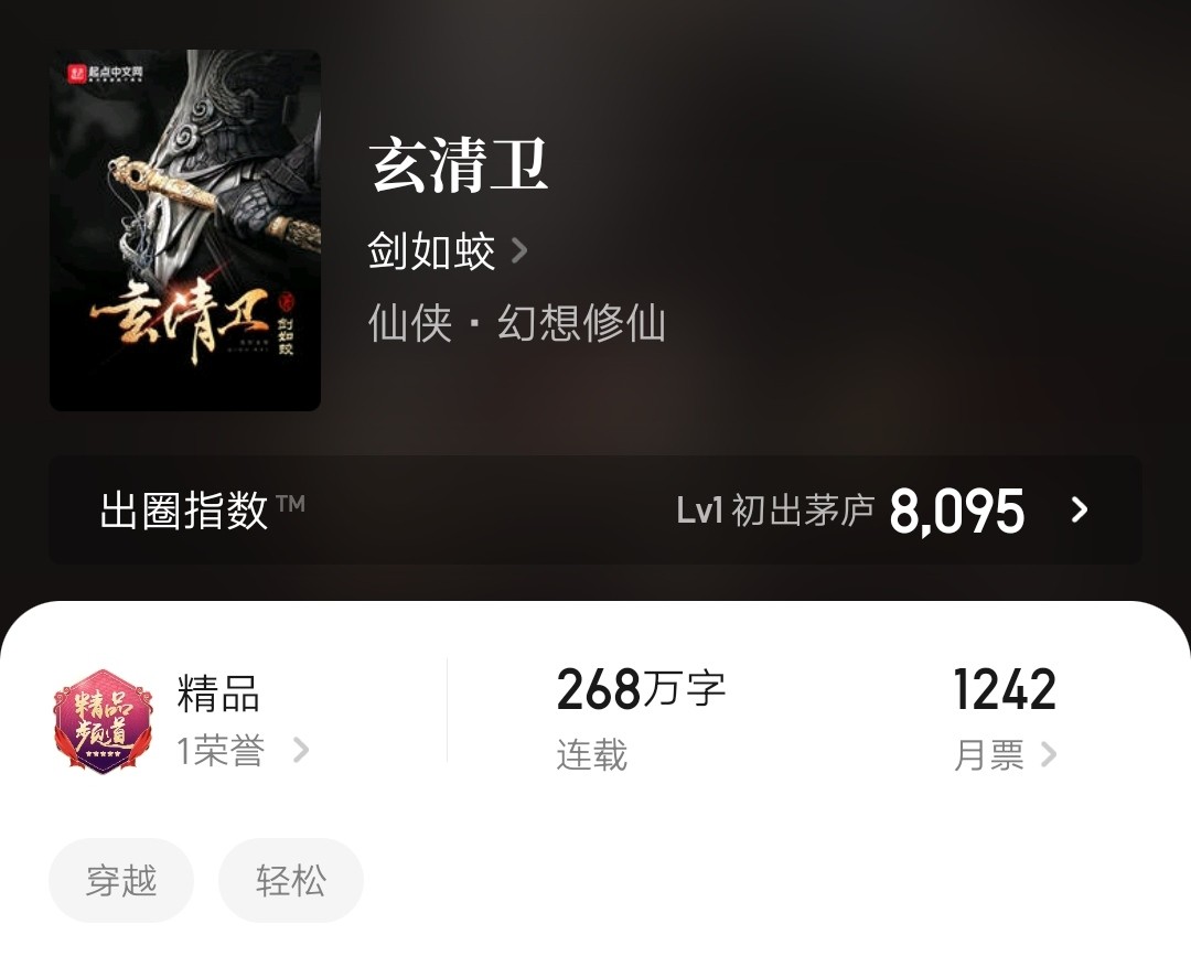 书评:有智商,不白痴的穿越者做类似古代帝王鹰犬的玄幻小说,前期中期都不错,后期不知道。虚构了一个古代世界,武功偏玄幻,主角类似锦衣卫,从小人物一路破案,抽丝剥茧的推演,步步为营的心思,一击必中的干脆利落。武功升级,站队上位。有险无惊,看着不累,适合放松看。