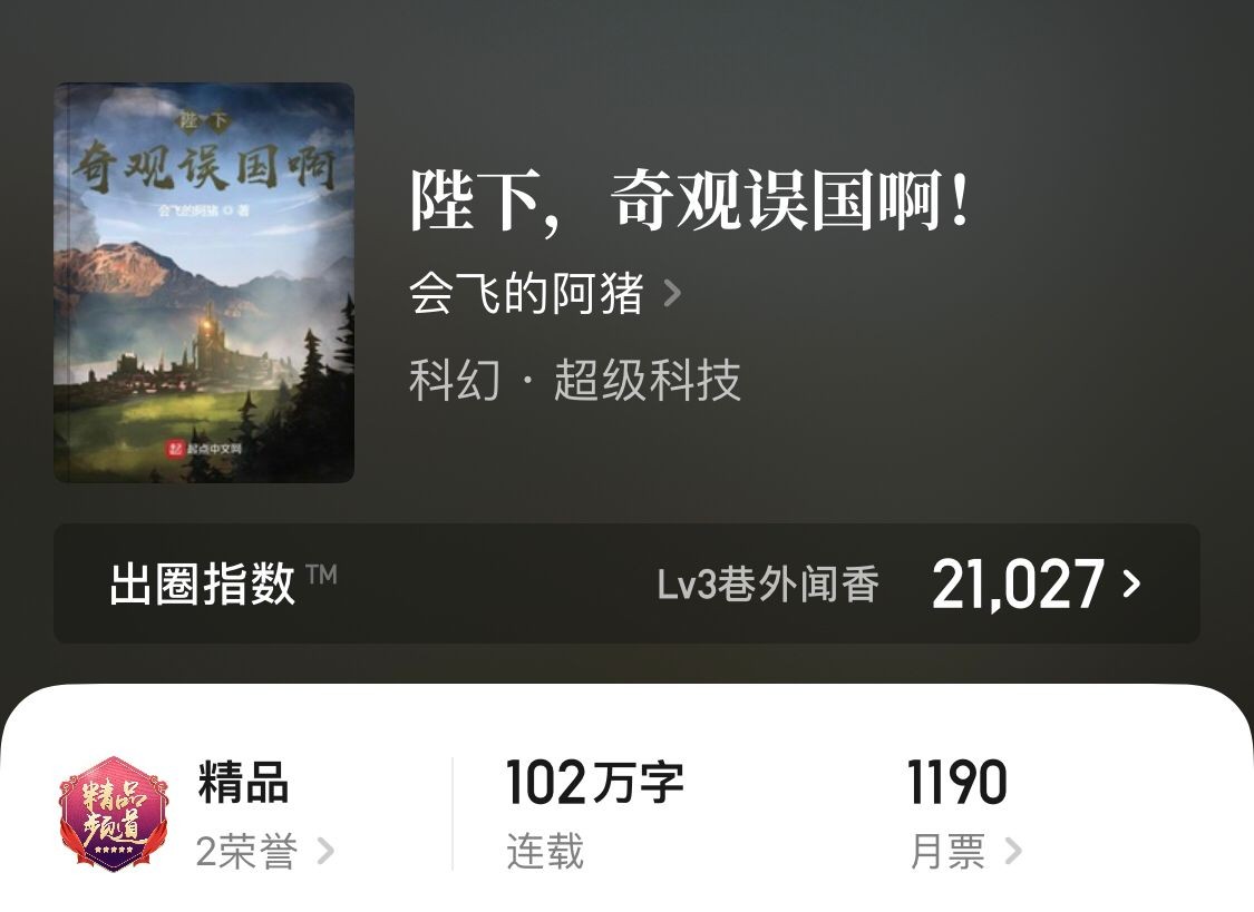 总体来说,这本书还是挺有想法的,作为领主种田文来说,这本书挺爽的,目前字数也肥了起来,老铁们可以看看。