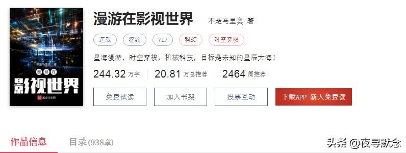 评价:欢乐向,一个个不同的电影,被作者连接成了一个广泛的世界,从而形成完整的世界观,其可以说是我看过的最好看的无限流小说。文笔极佳,整体欢乐,绝对精品,不会失望。
