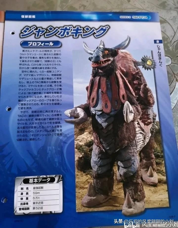 异次元人亚波人的余党聚集曾经被艾斯奥特曼打败的超兽的灵魂和分子,抽取了优秀的部分结合合体而诞生出的超兽,也被称为"超兽之王",设定为艾斯奥特曼TV版最强超兽。以从口中释放的火焰和导弹,从眼中释放的破坏光线为武器。