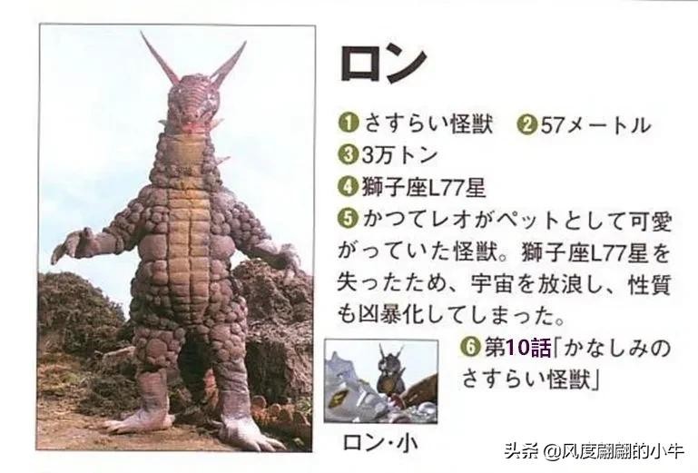 流浪怪兽罗恩,以前是生活在雷欧·奥特曼的故乡·狮子座L77星球上的一个怪兽物种,还是一种能消灭L77星鼹鼠的益兽。原始大小只达到雷欧奥特曼的膝盖,善于游泳,加上和雷欧很亲近,因此被雷欧当做宠物饲养。在L77星被马格马星人和孪生怪兽毁灭后,失去故乡的罗恩在宇宙中流浪,为了生存,吸收了宇宙能量而变得巨大,并且性格也逐渐变得凶残。