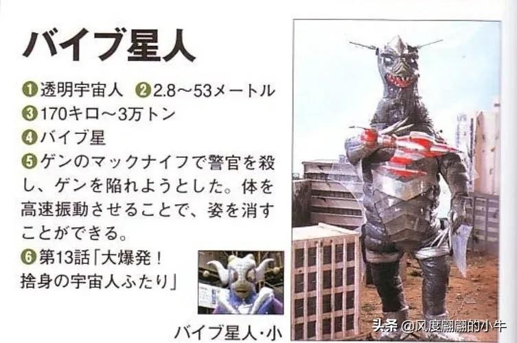 百贝星人,从马头星云上的百贝星来到地球的卑劣宇宙人,会发出令人毛骨悚然的怪异叫声,通过使全身高速振动,可以使自己的身姿透明化。