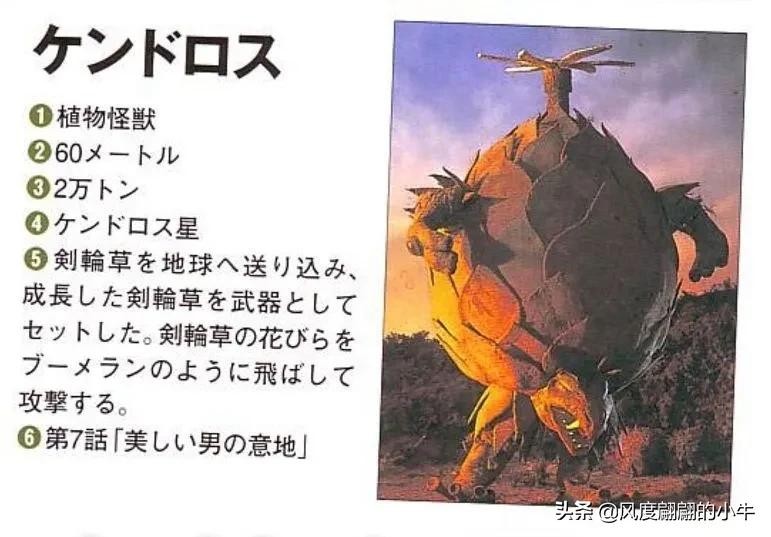 植物行星肯多罗斯星出身的宇宙怪兽,操纵危险植物——花瓣是锐利回旋镖(boomerang)的剑轮草来攻击。雷欧也在其强劲威力下一度败退。先是把剑轮草送到地球,待剑轮草成熟后来到地球发射巨大化光线将其变为自己的武器,在仙台大闹之后飞往东京。没有剑轮草的肯多罗斯是连MAC也能消灭的普通怪兽,但是得到剑轮草后实力大增,出击的MAC战斗部队被全灭。主要武器除了剑轮草以外,还有从指尖放出火箭弹、用巨大的身躯碾压对手的身体至粉碎。与雷欧第二次交战时,双手被雷欧拔掉,回旋镖被获得特训成果的雷欧悉数打掉,最终被雷欧以「身体回旋镖」破坏了剑轮草受到了致命伤,觉悟到死期已至的肯多罗斯想和雷欧一起自爆,但被雷欧躲开后撞到高楼爆炸而死。