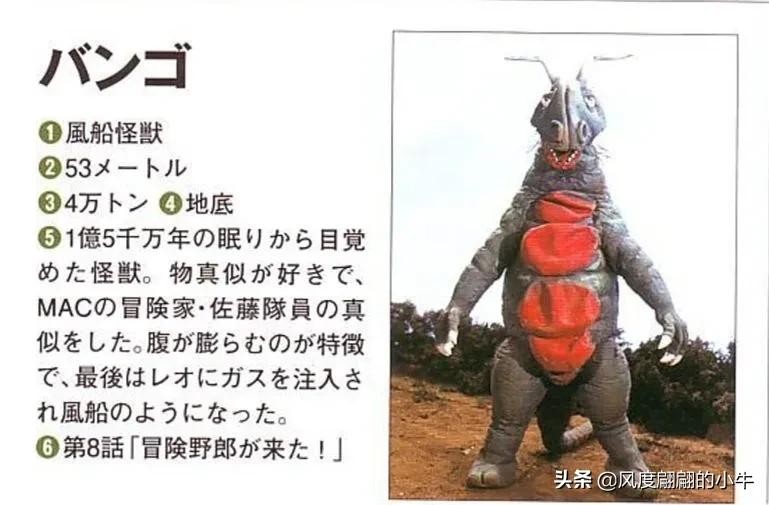 气球怪兽班戈,是地球本土的一种地底怪兽,从一亿五千万年的休眠状态中苏醒,性格如同顽皮的小孩一般,会模仿周围的人事物,生气时会使用其自满的怪力狂暴地进行破坏。