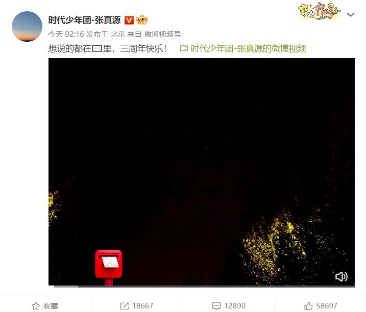 原标题:时代少年团出道三周年 张真源录语音信分享成长心声