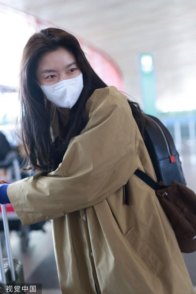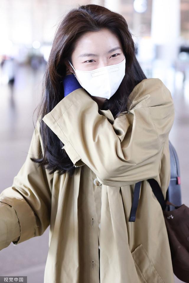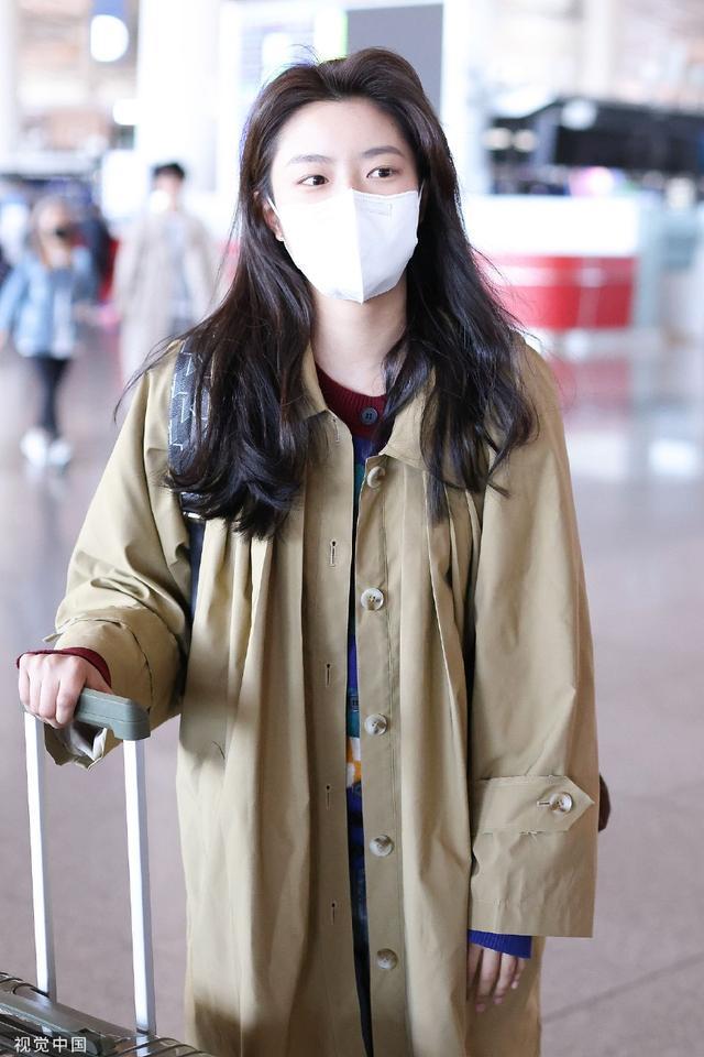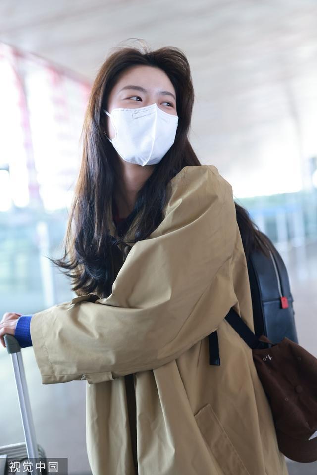 徐若晗穿卡其色风衣现身机场 面对镜头笑眼弯弯超可爱