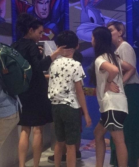 张柏芝陪儿子游玩 Lucas身高快赶上妈妈