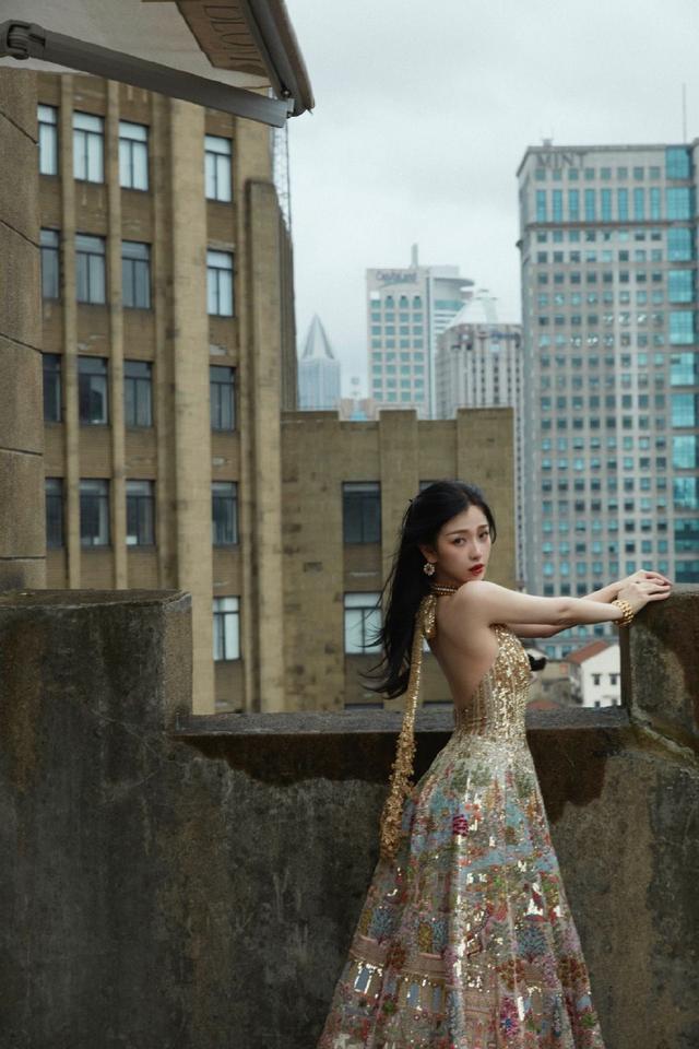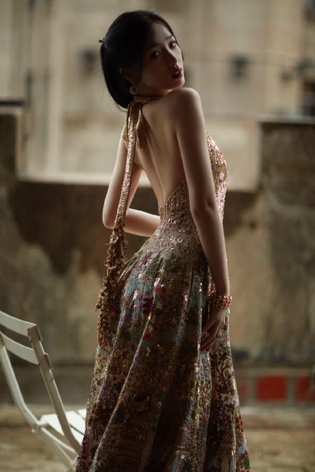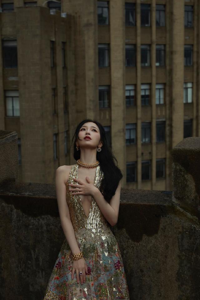 虞书欣异域风鎏金刺绣长裙 深 V 到胃大秀性感眼神魅惑迷人