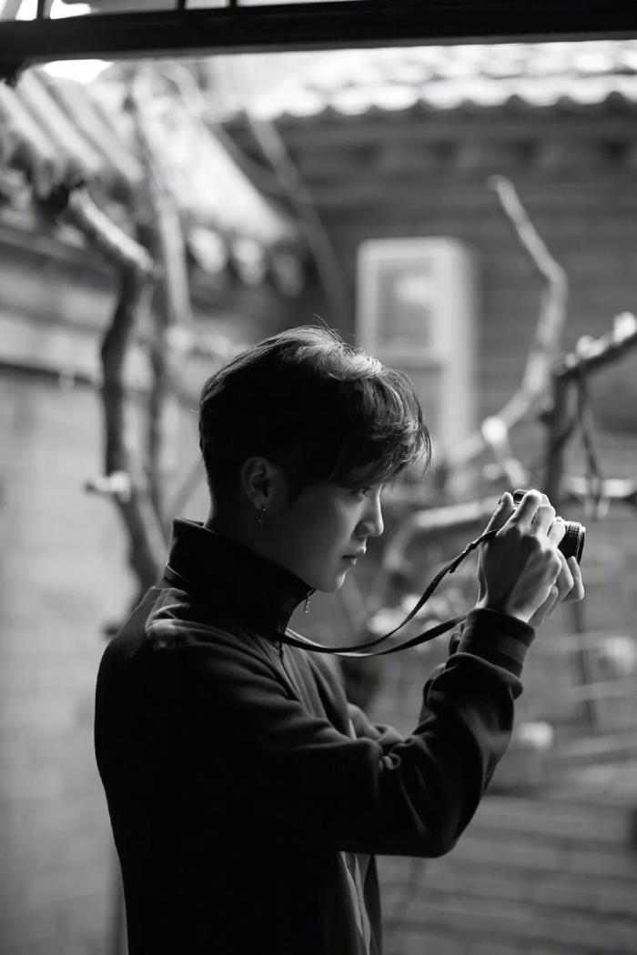 蔡徐坤全黑造型机场饭拍路透,全黑造型的小台灯出发啦……