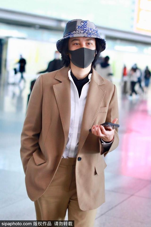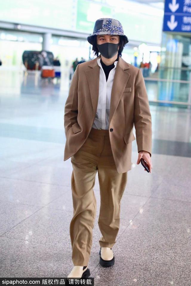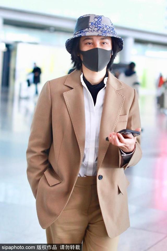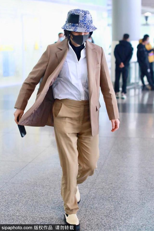 尚雯婕穿卡其色西装现身机场 单手插兜状态悠闲自在