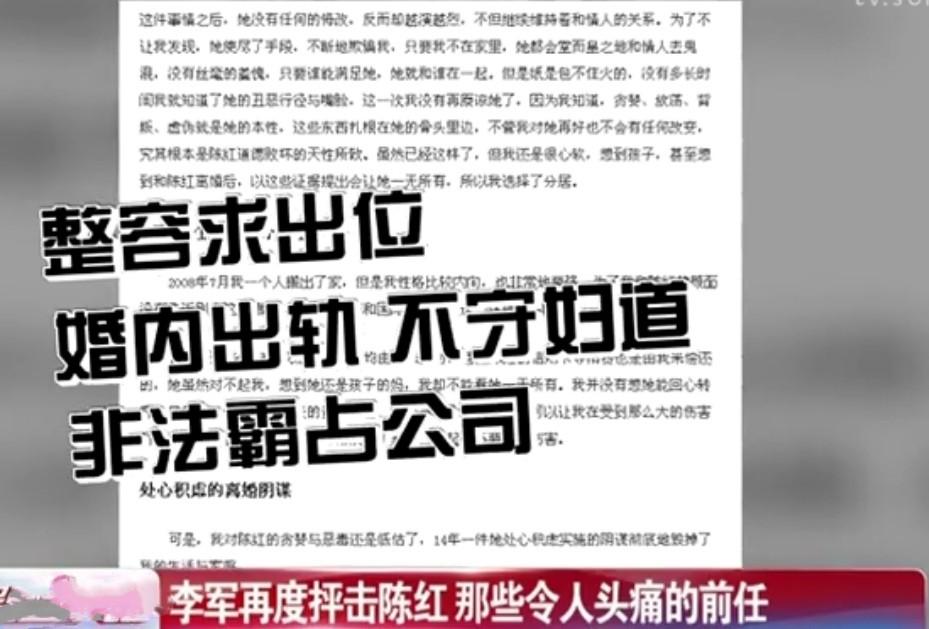 尽管如此,李军还在多次在媒体前,公开披露陈红的“罪行”。