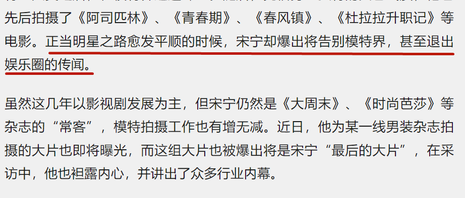 宋宁就这样成为了一名模特,算是靠近了娱乐圈的边缘。