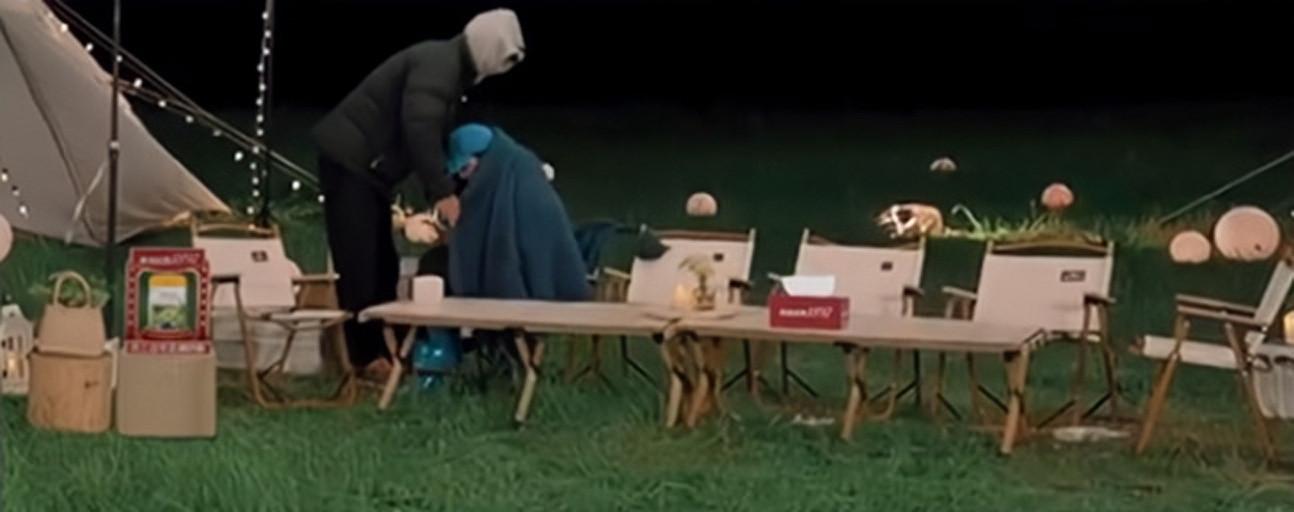 往近了说,在节目第一期众人坐在帐篷下张婉婷被雨水滴到,宋宁峰很贴心地让她坐到自己身边,还不忘拿羽绒服给她裹腿。