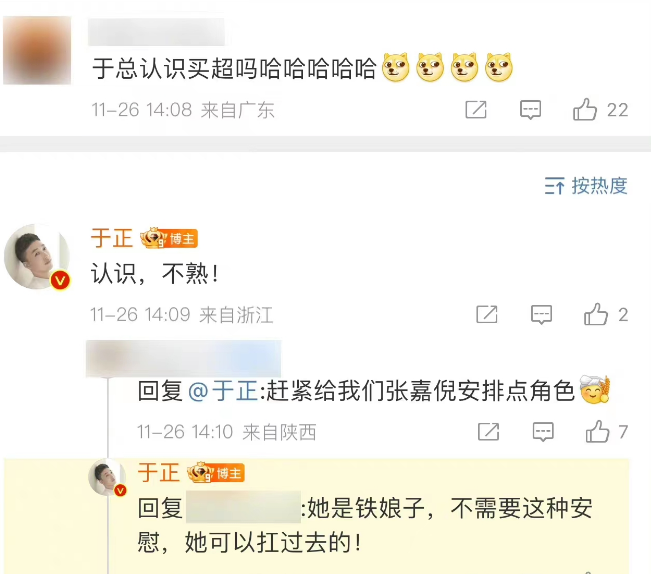 官宣离婚后,有网友让于正给张嘉倪安排点角色。