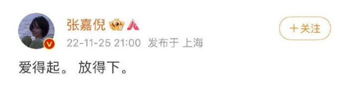 在爆出买超出轨的时候,她第一时间发文:“爱得起,放得下。”