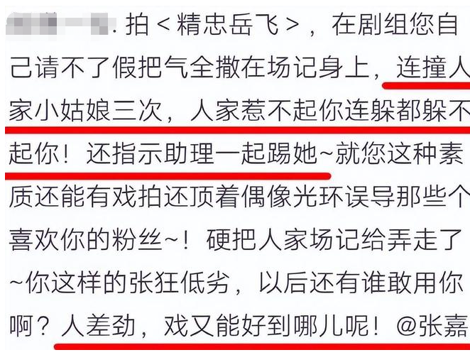 然后张嘉倪就把气撒到场记身上。