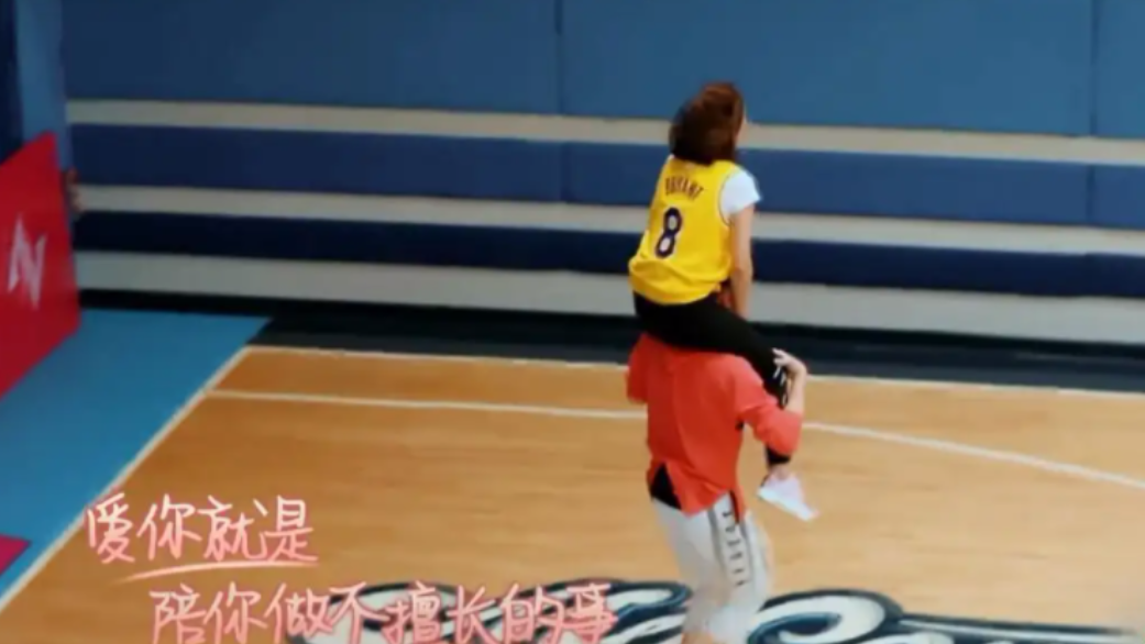 张嘉倪想投篮,买超就把她举起来。