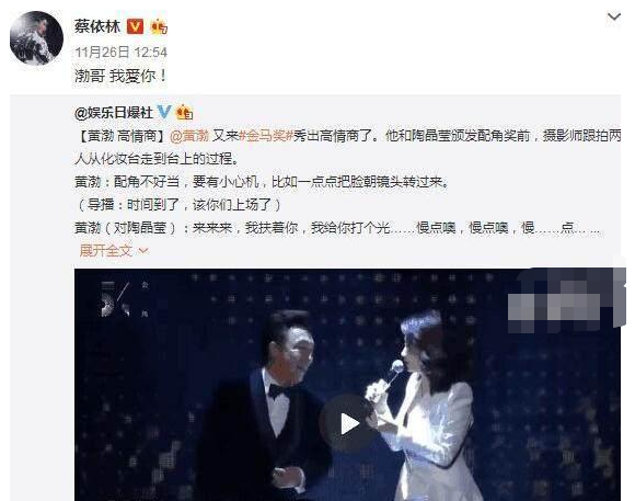 蔡依林也曾在公众平台上,大胆喊话“渤哥,我爱你!”