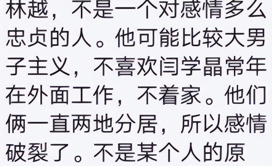 即便闫学晶如此悉心经营自己的婚姻,却还是没有得到老公林越的认可。