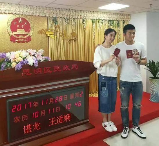 2025年11月27日晚求婚成功,11月28日谌龙和王适娴就在厦门思明区领证结婚,动作迅速。