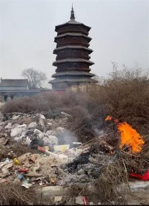 - 网友称山西应县木塔周围有明火燃烧 当地:起火点为定点垃圾清理点,在保