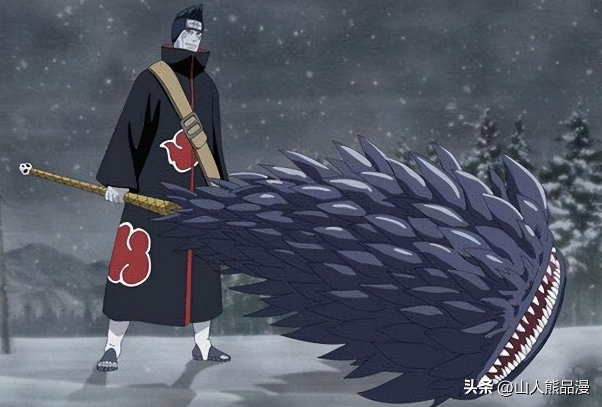 鲛肌是火影中最熟悉的忍刀之一了,能够吸取敌人的查克拉并且为主人疗伤。最为惊艳的还是他在干柿鬼鲛手上的时候,平常被缠绕的绷带,战斗时现出大头大嘴坚刺的外形,有那么点恐怖的感觉,能够和主人合体,它和鬼鲛合体后真是十分的难缠!原主人是西瓜山河豚鬼,被鬼鲛干掉的上司。