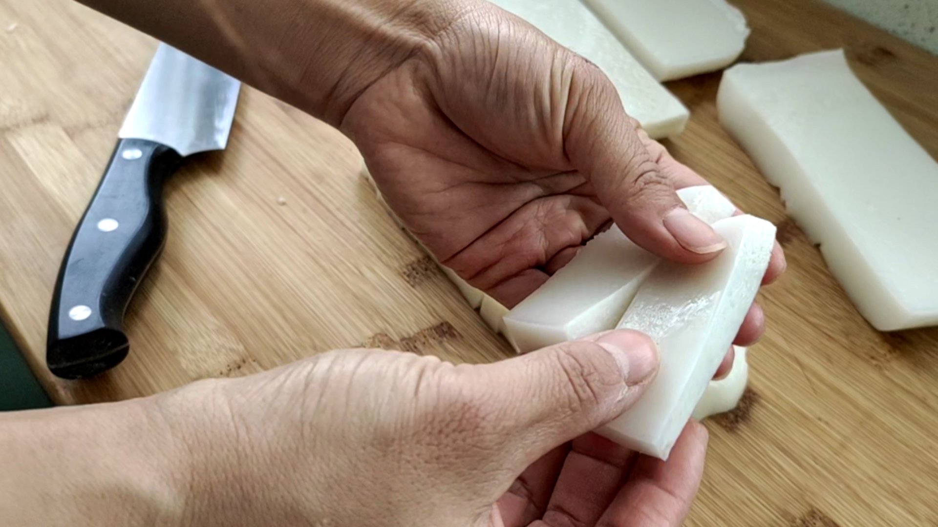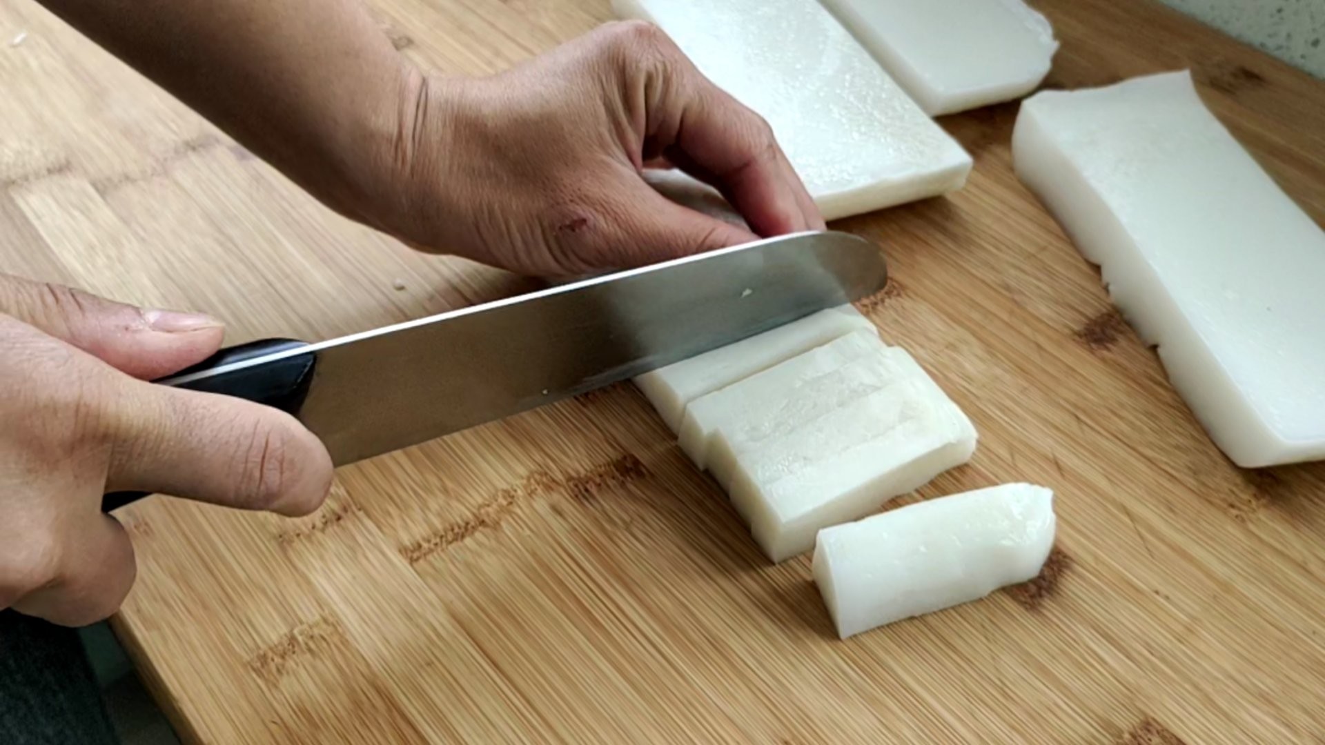 ⑤ 凝固好以后,脱模切片,浇上你喜欢的凉拌酱汁就可以了。
